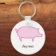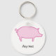 Cute pink pig custom keychains with with text you can personalise and white background colour you can change. This key holder was designed for kids or adults as a gift or party favour and is perfect for anyone who collects or loves things related to pigs.