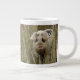 This awesome mug features a beautiful photograph of a cute pink spotty pig emerging from some tall grass.