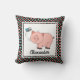 Cute pig on black w colours, personalise w Name Cushion