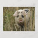 This cute postcard features a beautiful photograph of a cute pink spotty pig emerging from some tall grass.