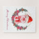 Cute Pig With Bow, Wreath, Polka Dots Christmas Jigsaw Puzzle