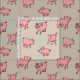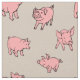 Cute pigs pattern printed fabric. Pink pigs on a tan background. Cute and funny cartoon pigs fabric for pig lovers to use in sewing and crafting projects.