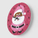 This unique Christmas wall clock is sure to bring joy and cheer to your home! It has a fun and festive design, featuring a cute African-American Santa Claus wearing a pink costume and snowflakes on a viva magenta background. You can customise it to add a personal touch to your home or office.