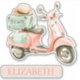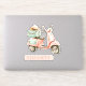 This adorable vinyl sticker features a watercolor scooter in soft shades of pink and aqua green. Personalize with your choice of name or special text.