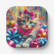Cute Pink and Blue Kitten Girl's Birthday Paper Plate