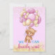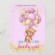 Cute Pink and Gold Teddy Bear Balloons Baby Shower Invitation