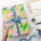 Cute Pink and Green Geometric Pattern Aesthetic Wrapping Paper