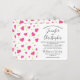 Wedding invitation with a cute pattern composed of pink and green hearts on a white background.