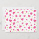 A wedding invitation with a cute pattern composed of pink and green hearts on a white background.