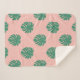 Cute Pink and Green Tropical Monstera Leaf Pattern Sherpa Blanket