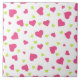 A ceramic tile with a cute pattern composed of pink and green tumbling hearts on a white background.