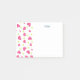 Post-it notes with a cute pattern composed of pink and green tumbling hearts on a white background.