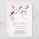 Cute Pink and Grey Birds Botanical Baby Shower Invitation
