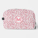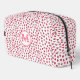 NewParkLane - Cute personalised Dopp Kit, featuring a pattern of pink and red little hearts, with a round frame for your name and monogram. Easy to customise in Zazzle with your own text for a personalised design.