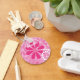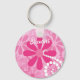 A cute and girly pink and white floral keychain for a teen girl with pink retro daisies and white circle swirls. This pretty flowers design can be personalised by adding the name of any girlie girl.