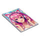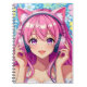 Anime girl notebook. An adorable anime girl in headphones with cat ears listening to music with pink hair, purple eyes, and a floral background.
