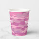 Cute pink army camo camouflage custom paper cups. Disposable party supplies with grey pattern. Double sided print. Fun for Birthday, BBQ, military wedding, going away party and more. Great for coffee and other drinks. Also available in green.