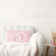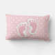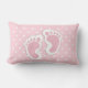 A lumbar pillow with an adorable image of pink baby girl footprints with a heavy white outline.