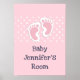 Personalised poster with an adorable image of pink baby girl footprints with a heavy white outline.