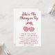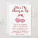 Cute Pink Bow Cherry on Top First Birthday Invitation