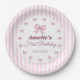 Cute Pink Bow First Birthday Paper Plate