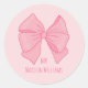 Cute Pink Bow Girl's Monogram and Name Classic Round Sticker