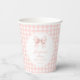 Enhance your baby girl shower with these elegant and adorable paper cups featuring a charming pastel pink bow accentuated by a delightful gingham pattern. Elevate your celebration with these stylish and practical cups, perfect for serving refreshments to your guests.