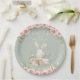 Cute Pink Bunny 2 Two Second Green Birthday Paper Plate