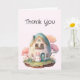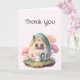 Thank You card with an adorable image with a round shaped bunny standing outside it's egg-shaped house. Has a pastel Japanese kawaii vibe.