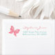 Personalised cute adorable pink butterfly teal turquoise script return address label with your name and text.