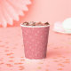 Pink paper cups for your Christmas party with a cute candy cane and snowflake pattern . The text says "Happy Holidays !" You can leave it as it it or replace it with your own . Those cups are also available in green and blue .