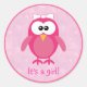 Cute Pink Cartoon Owl Its A Girl New Baby Classic Round Sticker