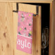 Cute Pink Christmas Flamingo and Pineapple Pattern Tea Towel