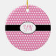 Cute Pink Custom initials Polka Dot Ceramic Ornament