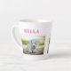 Cute dog photo latte mug with name in pink colour. Personalise this cute photo latte mug with your dog favourite photo and the name. You can use this latte mug template for any pet or any occasion.