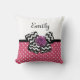 What girly girl can resist this cute pink and white polka dot pattern square throw pillow with a trendy black and white chevron bow and a chic purple ribbon rose. It is easy to personalise this pink and purple retro meets modern design by adding the name of your teen girl to the text template area. Flat printed image, NOT actual rosette ribbon and bow.