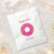 Cute pink doughnut paper favour bags for Birthday, girls or boys baby shower, wedding, sweet 16 birthday and more. Personalised party supplies for celebrations. Add your own name, date and thank you for coming message. Trendy brush script typography template. Custom background colour like pink, blue, yellow etc. Hand out homemade doughnuts, sweets, candy, selfmade pastries, cakes, baked goods, treats and other fingerfood for guests. Available in white, ecru and beige kraft paper. Cheap bulk pack offer. Also nice for cup cake shop products, bakery store, coffee bar business, office party, retirement, gathering etc. Fun sweet doughnut food design with coloured sprinkles.