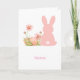 Cute Pink Easter Bunny with Spring Flowers Card