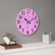 Cute painting of a pink elephant with white polka dots is printed on custom decorative wall clocks. The background colour of pink can be customised. The numbers are large and black. Thank you for shopping CherylsArt on Zazzle: http://www.zazzle.com/CherylsArt*/