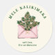 Cute Pink Envelope Holly Greenery Mele Kalikimaka Classic Round Sticker