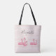 Cute Pink Flamingo Custom Name Coral Stripes Chic Tote Bag