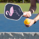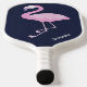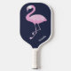 Cute Pink Flamingo on Dark Blue with Name Pickleball Paddle