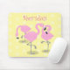 Cute pink flamingo trio cartoon illustration mouse pad