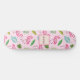 This is custom personalized skateboard featuring pink flamingos pattern with tropical leaves on light pink background.