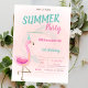 Cute Pink Flamingos Summer Birthday Party Invitation