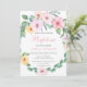 Elegant Pink Floral Leaf Wreath Baptism Invite
