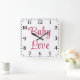Cute Pink Floral Rose Polka Dot Baby Nursery Square Wall Clock