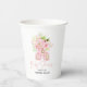 Cute pink flower-decorated alphabet blocks illustration, paper cups for your baby shower celebration.