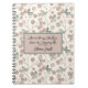 Cute Pink Flowers and Green Illustrated Birds Notebook