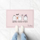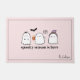 Elevate your Halloween home decor with this cute pink doormat with a friendly ghost trio, bat, and spider. Text is editable.